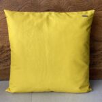 Almofada 50cm x 50cm sem aba com tecido 100% acrílico amarelo. Enchimento com fibra cardada antimofo e ácaros, revestida com tecido impermeável. Ziper inoxidável na parte inferior.